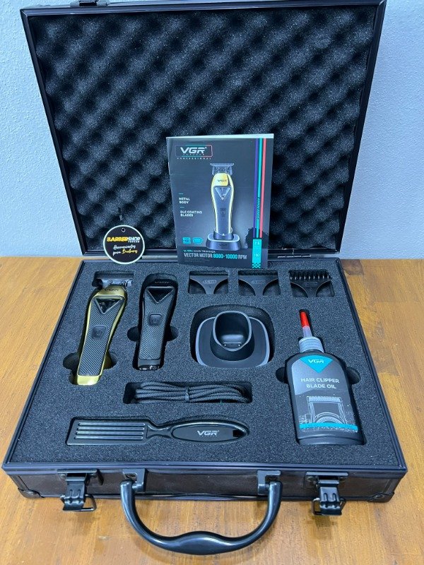 Incluye: Carcasa de repuesto,alzas,base de carga,cepillo fade,destornillador,kit de lubricación,cable de carga.